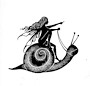 eine Silhouette Fee reitet eine Schnecke.