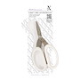 This is a must have item for all crafters. General purpose scissors with micro serrated blades for detailed snipping and non slip cutting plus large comfortable handles for ease of use. Blade thickness 2.5mm, stainless steel blades with titanium coating, scissor length 6 3/4", rubber plastic handle. Cuts fabric and multiple layers