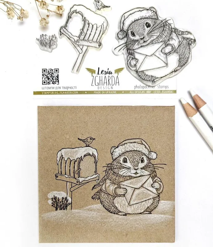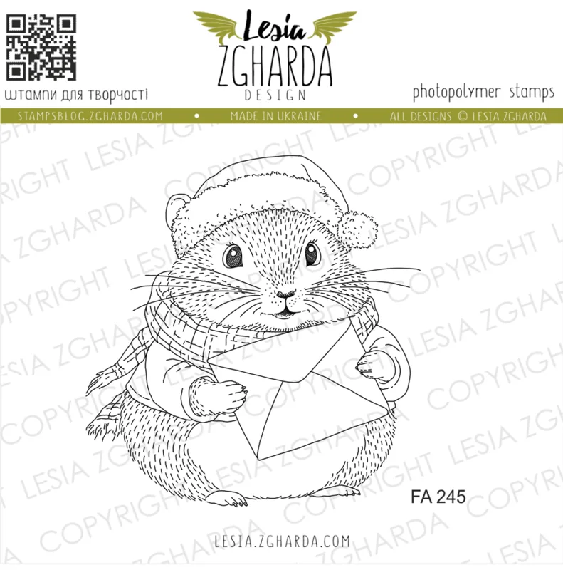Lesia Zgharda Stamps "Christmas Hamster with Envelope"