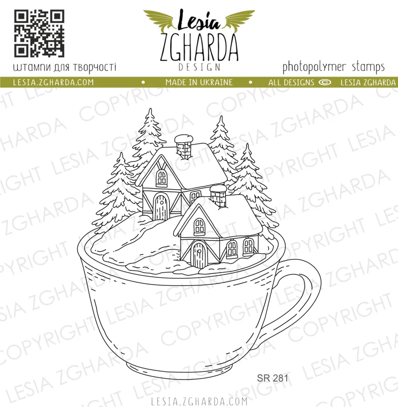 Lesia Zgharda Stamps "Christmas Vilage in the Cup"