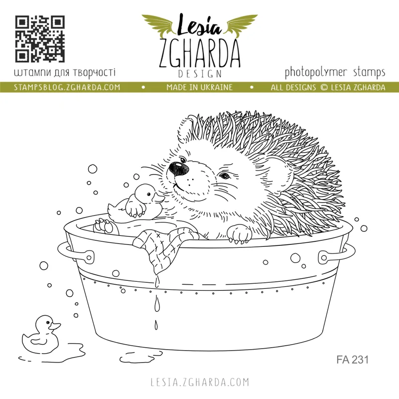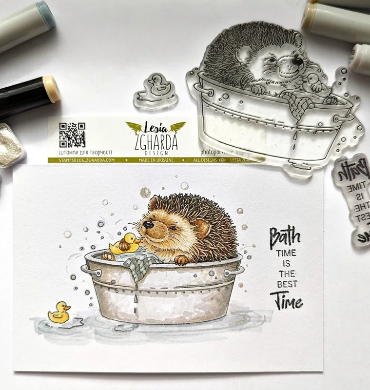 Lesia Zgharda Stamps Set "Hedgehog in the Vintage Bathtub"