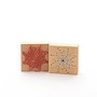 Für eine gute Handhabung der Stempel wird das Stempelgummi mit einer dämpfenden Schicht auf einen Griff geklebt. Dieser Griff besteht aus einem lackierten Buchenholzklötzchen, das das Motiv in original Größe zeigt.