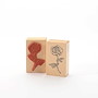 Für eine gute Handhabung der Stempel wird das Stempelgummi mit einer dämpfenden Schicht auf einen Griff geklebt. Dieser Griff besteht aus einem lackierten Buchenholzklötzchen, das das Motiv in original Größe zeigt.