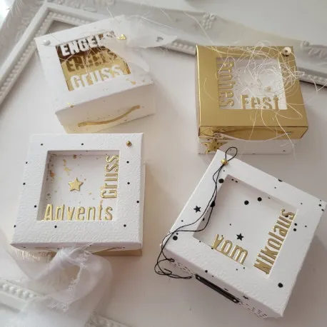 Schriften-Set passend zur Scheckkartenbox Nr.184 und der kleinen quadratischen Schachtel Nr.192