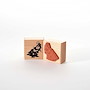 Für eine gute Handhabung der Stempel wird das Stempelgummi mit einer dämpfenden Schicht auf einen Griff geklebt. Dieser Griff besteht aus einem lackierten Buchenholzklötzchen, das das Motiv in original Größe zeigt.