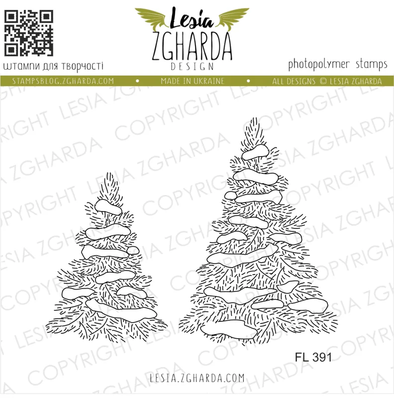 Lesia Zgharda Stamps "Snowy Christmas Trees"