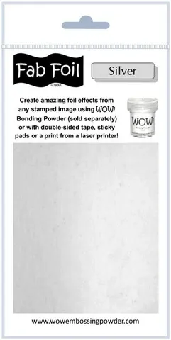 Für beste Ergebnisse verwenden Sie das Produkt zusammen mit WOW!Bonding Powder (separat erhältlich). Verwenden Sie es wie ein Prägepulver, aber lassen Sie es etwas länger erhitzen. Sobald es geschmolzen ist, legen Sie die Folie sofort mit der farbigen Seite nach oben auf, reiben Sie sie an (Vorsicht, sie kann heiß sein), damit sie haftet, und lassen Sie sie dann abkühlen. Sobald sie vollständig abgekühlt ist, ziehen Sie sie ab.