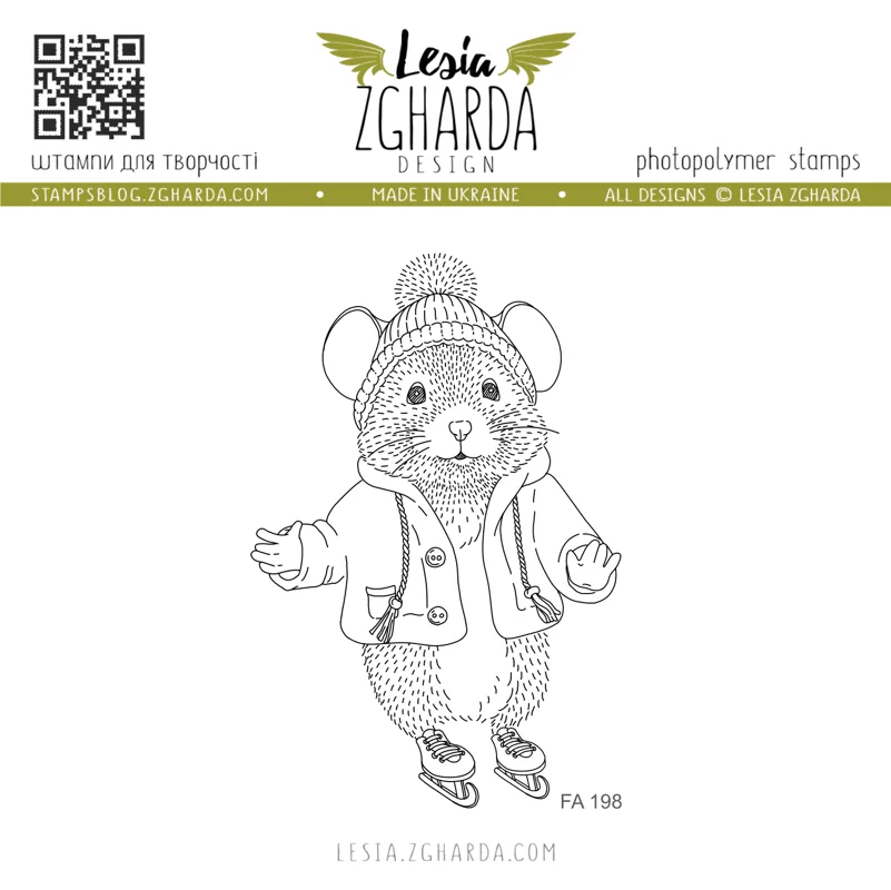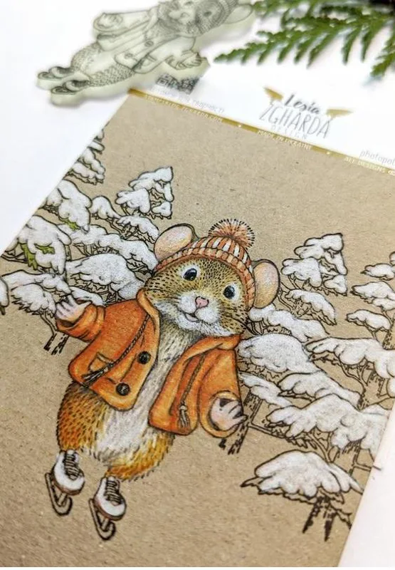 Lesia Zgharda Stamps "Winter Skating Mouse"