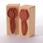 Für eine gute Handhabung der Stempel wird das Stempelgummi mit einer dämpfenden Schicht auf einen Griff geklebt. Dieser Griff besteht aus einem lackierten Buchenholzklötzchen, das das Motiv in original Größe zeigt.