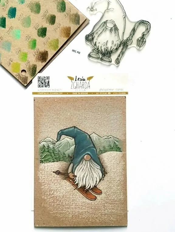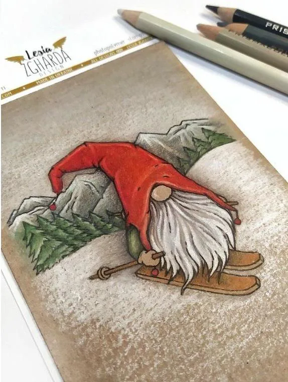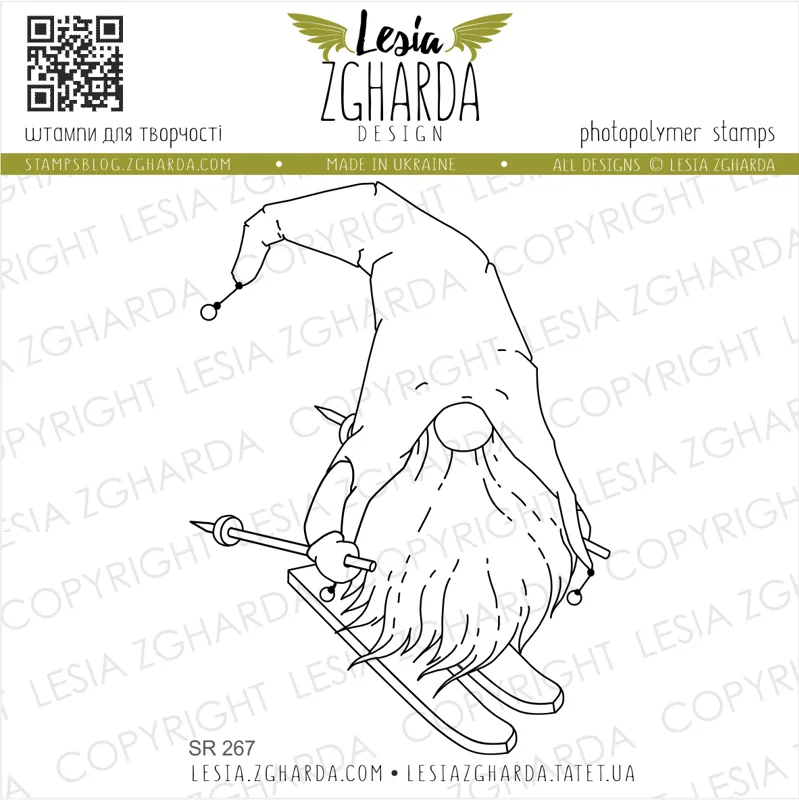 Lesia Zgharda Stamps "Christmas gnome with skis"