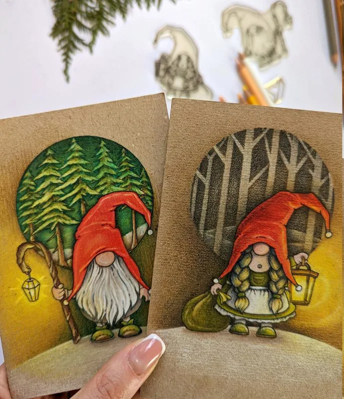 Lesia Zgharda Stamps "Christmas gnome with a lantern on a cane"