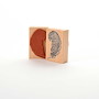 Für eine gute Handhabung der Stempel wird das Stempelgummi mit einer dämpfenden Schicht auf einen Griff geklebt. Dieser Griff besteht aus einem lackierten Buchenholzklötzchen, das das Motiv in original Größe zeigt.