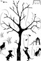 Clear Stamp Set Spaziergang im Park: 12 Silhuoetten-Stempel, darunter ein großer Winterbaum, 2 Katzen, 2 Hunde, 2 Gräser und 4 entfernte Freizeitparkmotive: Schaukeln, Wippe, Steckenpferd, Spielhaus mit Rutsche. Die Katze sieht toll aus, wenn sie auf einen Ast gestempelt wird.