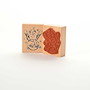 Für eine gute Handhabung der Stempel wird das Stempelgummi mit einer dämpfenden Schicht auf einen Griff geklebt. Dieser Griff besteht aus einem lackierten Buchenholzklötzchen, das das Motiv in original Größe zeigt.