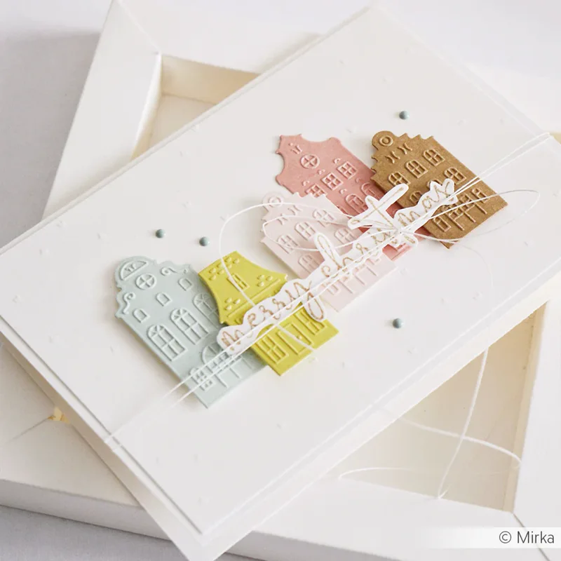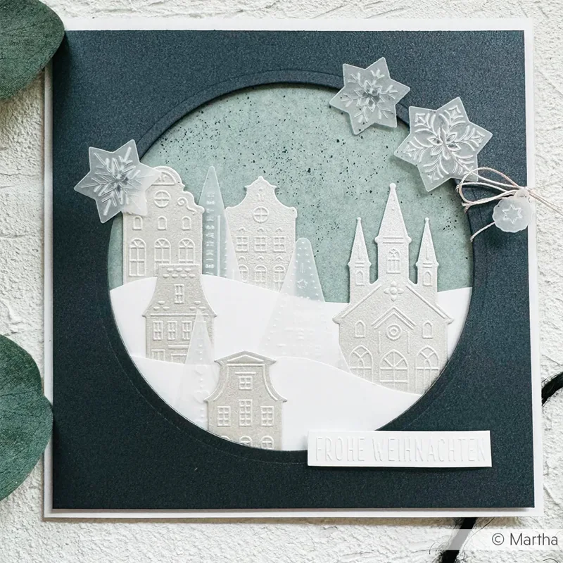 Mit unserem Cut & Emboss Folder 'Kleine Stadthäuser' können Motive gleichzeitig ausstanzt und geprägt werden.