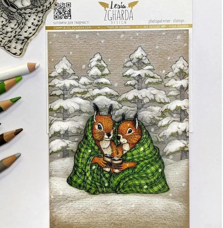 Lesia Zgharda Stamps "Cozy Squirrels Hugs"