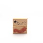 Für eine gute Handhabung der Stempel wird das Stempelgummi mit einer dämpfenden Schicht auf einen Griff geklebt. Dieser Griff besteht aus einem lackierten Buchenholzklötzchen, das das Motiv in original Größe zeigt.