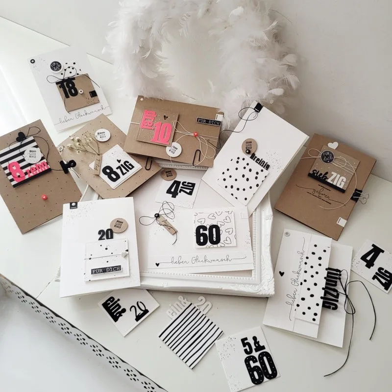 Hier erhaltet Ihr Zahlen die Ihr wunderbar kombinieren könnt. Perfekt zum dekorieren für die vielseitigen Boxen, Karten, Klötzchen, für Adventskalender, runde und nichtrunde Geburtstage, einfach für tausendundeine Gelegenheit!