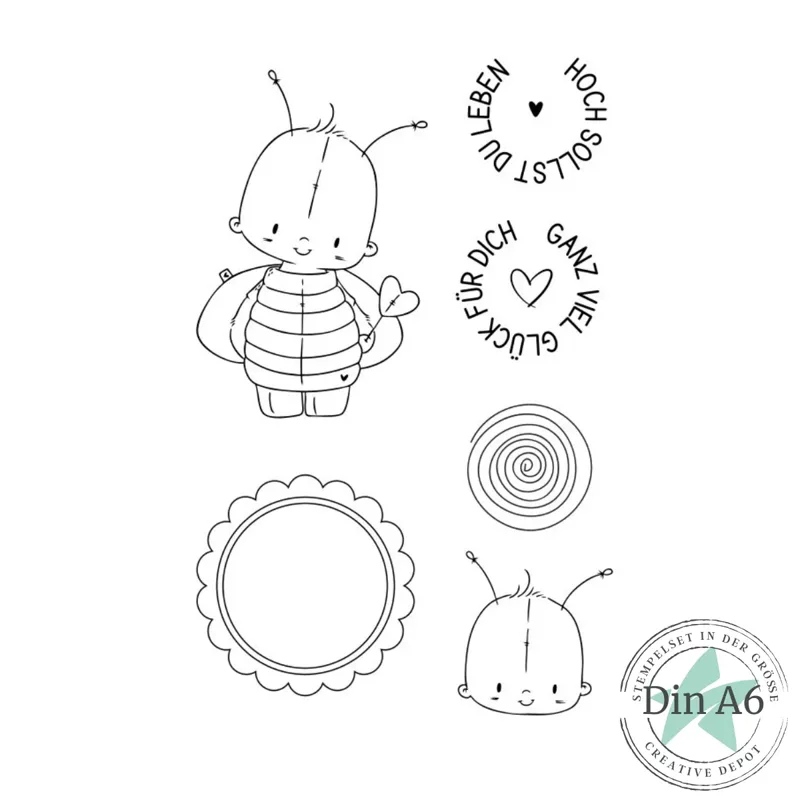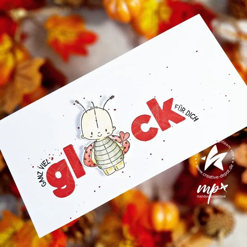 Dieses niedliche Stempelset bringt jede Menge Glücksmomente in deine Bastelprojekte. Das kleine Käferchen lädt zum Colorieren ein – ob mit bunten Flügelchen oder als süßes Gesicht, das auch separat gestempelt werden kann.