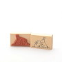 Für eine gute Handhabung der Stempel wird das Stempelgummi mit einer dämpfenden Schicht auf einen Griff geklebt. Dieser Griff besteht aus einem lackierten Buchenholzklötzchen, das das Motiv in original Größe zeigt.
