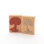 Für eine gute Handhabung der Stempel wird das Stempelgummi mit einer dämpfenden Schicht auf einen Griff geklebt. Dieser Griff besteht aus einem lackierten Buchenholzklötzchen, das das Motiv in original Größe zeigt.