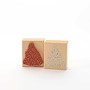Für eine gute Handhabung der Stempel wird das Stempelgummi mit einer dämpfenden Schicht auf einen Griff geklebt. Dieser Griff besteht aus einem lackierten Buchenholzklötzchen, das das Motiv in original Größe zeigt.