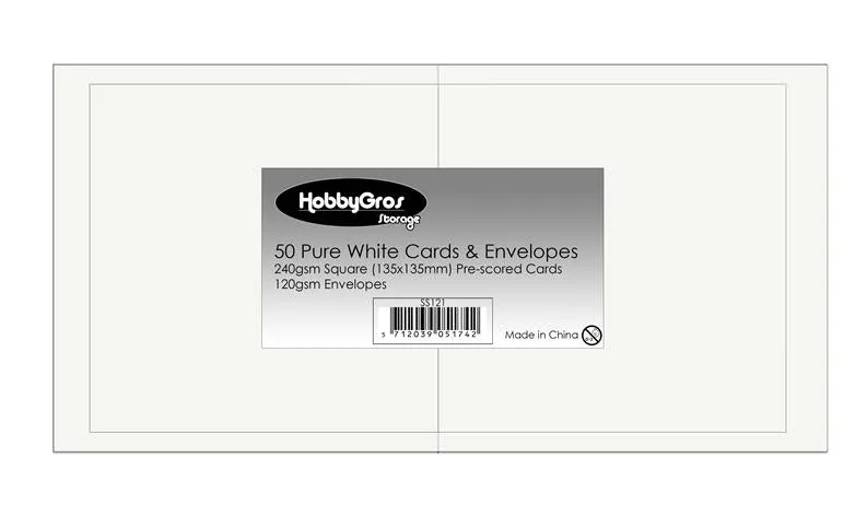 HobbyGros Storage - 50 Sets of 135x135mm Card/Envelopes "Pure White"
