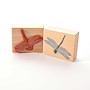 Für eine gute Handhabung der Stempel wird das Stempelgummi mit einer dämpfenden Schicht auf einen Griff geklebt. Dieser Griff besteht aus einem lackierten Buchenholzklötzchen, das das Motiv in original Größe zeigt.