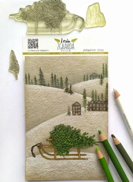 Lesia Zgharda Stamps "Christmas on the sleighs"