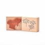 Für eine gute Handhabung der Stempel wird das Stempelgummi mit einer dämpfenden Schicht auf einen Griff geklebt. Dieser Griff besteht aus einem lackierten Buchenholzklötzchen, das das Motiv in original Größe zeigt.
