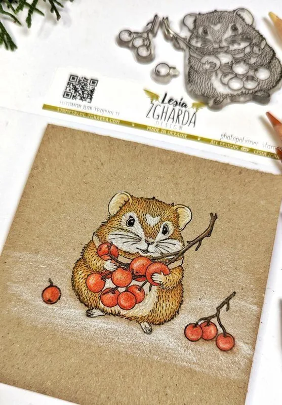 Lesia Zgharda Stamps Set "Hamster with Berries"