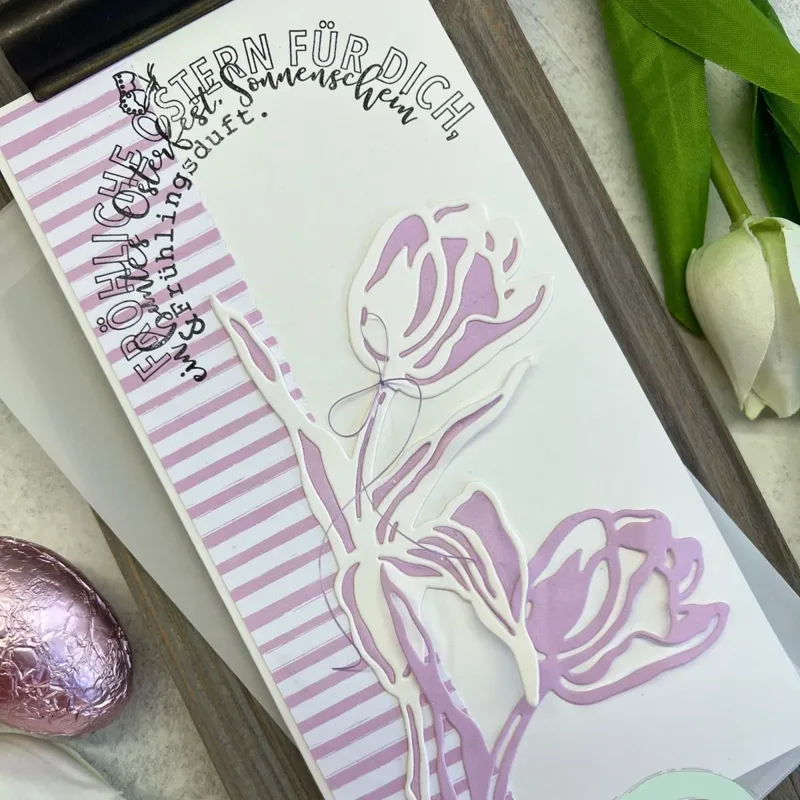 Mit dieser detailreichen Tulpen-Stanze gestaltest du wunderschöne Karten, Scrapbooking-Seiten und Dekorationen. Ob für Geburtstagskarten, Geschenkanhänger oder frühlingshafte Bastelideen – die elegante Tulpenform verleiht jedem Projekt eine besondere Leichtigkeit.