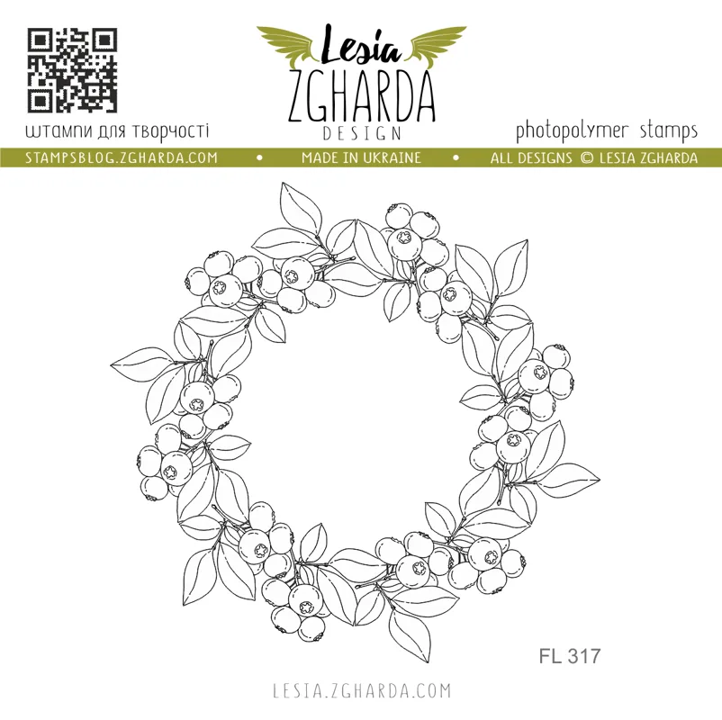 Lesia Zgharda Stamps "Christmas wreath with berries"