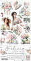 Ein Set von 12 doppelseitigen Seiten eines hochwertigen Scrapbooking-Papiers mit zusätzlichen Elementen zum Ausschneiden (2x6 Designs) + 1x Blatt mit EXTRAS ZUM SCHNEIDEN auf der anderen Seite des Covers. Jede Seite hat eine Größe von 15,5x30,5cm. Das Papier wiegt 250g/m2.