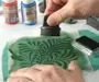 Die Schwämmchen haben einen stabilen komfortablen Handgriff mit dem Sie prima arbeiten können. Geben Sie einen großen Klecks Ihrer Farbe auf eine Palette und tupfen Sie mit dem Schwämmchen darauf. Die Farbe wird gemischt und aufgesaugt, anschließend können Sie die Farbe auf das Stempelgummi auftragen.