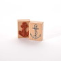 Für eine gute Handhabung der Stempel wird das Stempelgummi mit einer dämpfenden Schicht auf einen Griff geklebt. Dieser Griff besteht aus einem lackierten Buchenholzklötzchen, das das Motiv in original Größe zeigt.