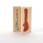 Für eine gute Handhabung der Stempel wird das Stempelgummi mit einer dämpfenden Schicht auf einen Griff geklebt. Dieser Griff besteht aus einem lackierten Buchenholzklötzchen, das das Motiv in original Größe zeigt.
