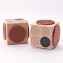 Für eine gute Handhabung der Stempel wird das Stempelgummi mit einer dämpfenden Schicht auf einen Griff geklebt. Dieser Griff besteht aus einem lackierten Buchenholzklötzchen, das das Motiv in original Größe zeigt.