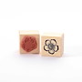 Für eine gute Handhabung der Stempel wird das Stempelgummi mit einer dämpfenden Schicht auf einen Griff geklebt. Dieser Griff besteht aus einem lackierten Buchenholzklötzchen, das das Motiv in original Größe zeigt.